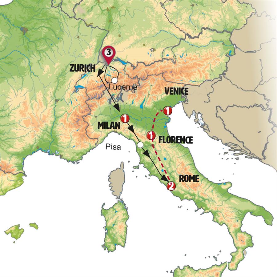 We’ll leave Zurich early in the morning, crossing the Alps to reach the Italian-speaking part of Switzerland. Our first stop will be Bellinzona, renowned for its three medieval castles, which are UNESCO World Heritage Sites. Perched on the hills overlooking the city, these castles highlight Bellinzona´s historical significance as a key alpine stronghold. Enjoy some free time to wander through the charming streets of the center. Next, we´ll enter Italy and stop in the charming town of Como for lunch. This town is considered the jewel of Lombardy, known for its beautiful gardens beside the lake and its spectacular cathedral. We’ll continue to Milan, where our guide will take us to the impressive Piazza del Duomo. You’ll have some time to wander around before we transfer you to the hotel.