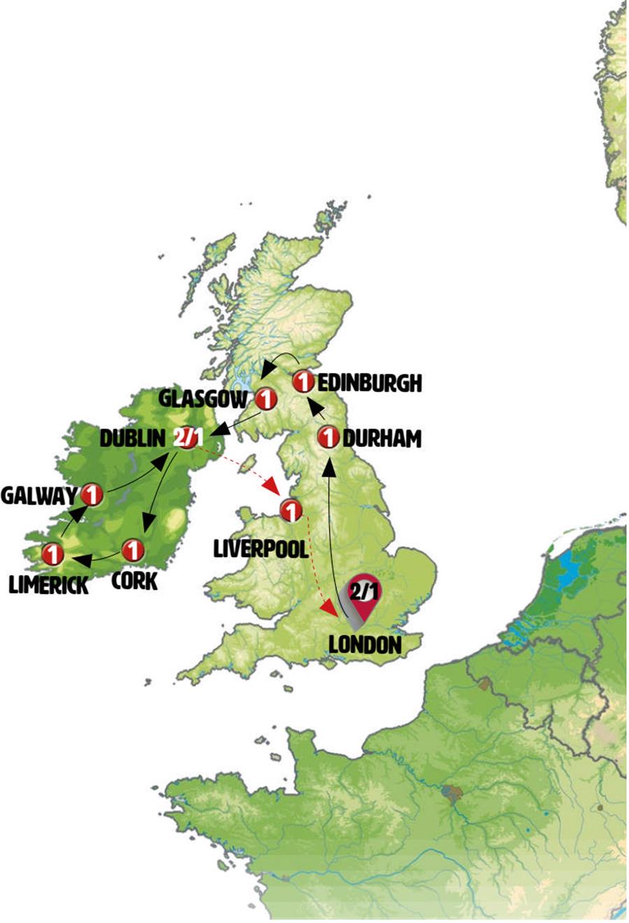 Note: Occasionally, depending on our arrival time in Dublin and the daylight hours, the tour may take place the previous afternoon.