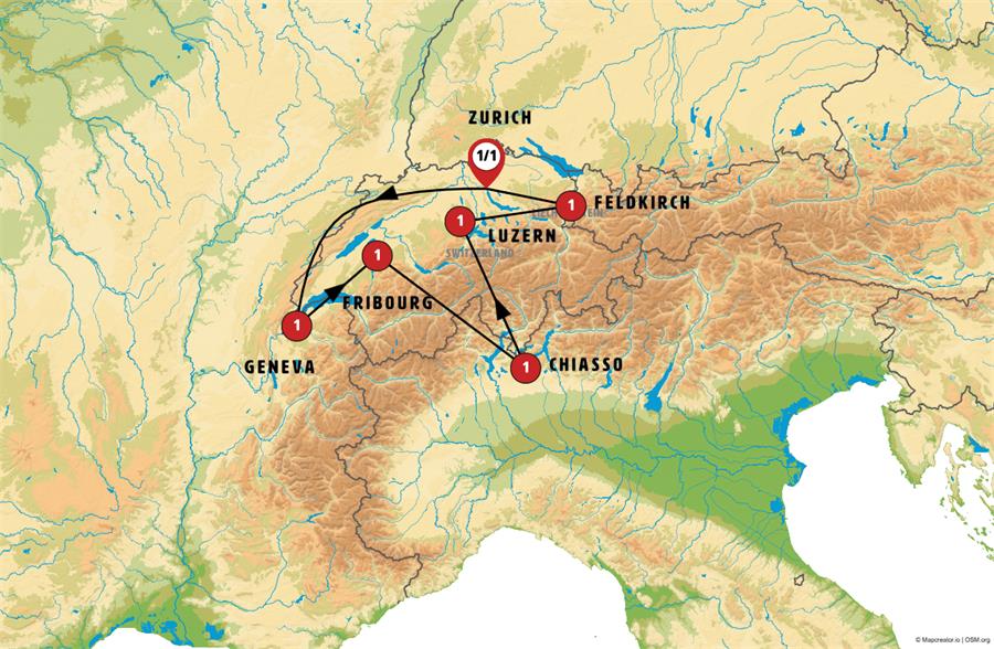 We’ll depart along a small, scenic road through the Bern canton, passing hills, forests, and green fields. We’ll make a photo stop along the way, either at Schwarzenburg Castle or, depending on accommodation, at a viewpoint overlooking Lake Thun or Lake Brienz. We’ll then continue to Interlaken, a tourist town nestled between two lakes. Afterwards, we’ll head to the Aare Gorge, where we’ll explore its impressive ravines (tickets included), followed by lunch (included). Next, we’ll journey toward one of Switzerland’s most spectacular mountain passes—the Susten Pass—with its eternal snow and glaciers. We’ll stop en route to take in the majestic glacier scenery. Surrounded by dramatic peaks, we’ll continue toward the Italian-speaking region of Switzerland, passing through the famous Gotthard Tunnel and stopping in Gandria, a charming lakeside village on Lake Lugano, known for its traditional, narrow, and steep streets. From there, we’ll board a boat (tickets included) to Lugano, the main city in Italian-speaking Switzerland, famous for its mild climate and beautiful lakeside promenade. Finally, we’ll head to Chiasso, arriving in the late afternoon.