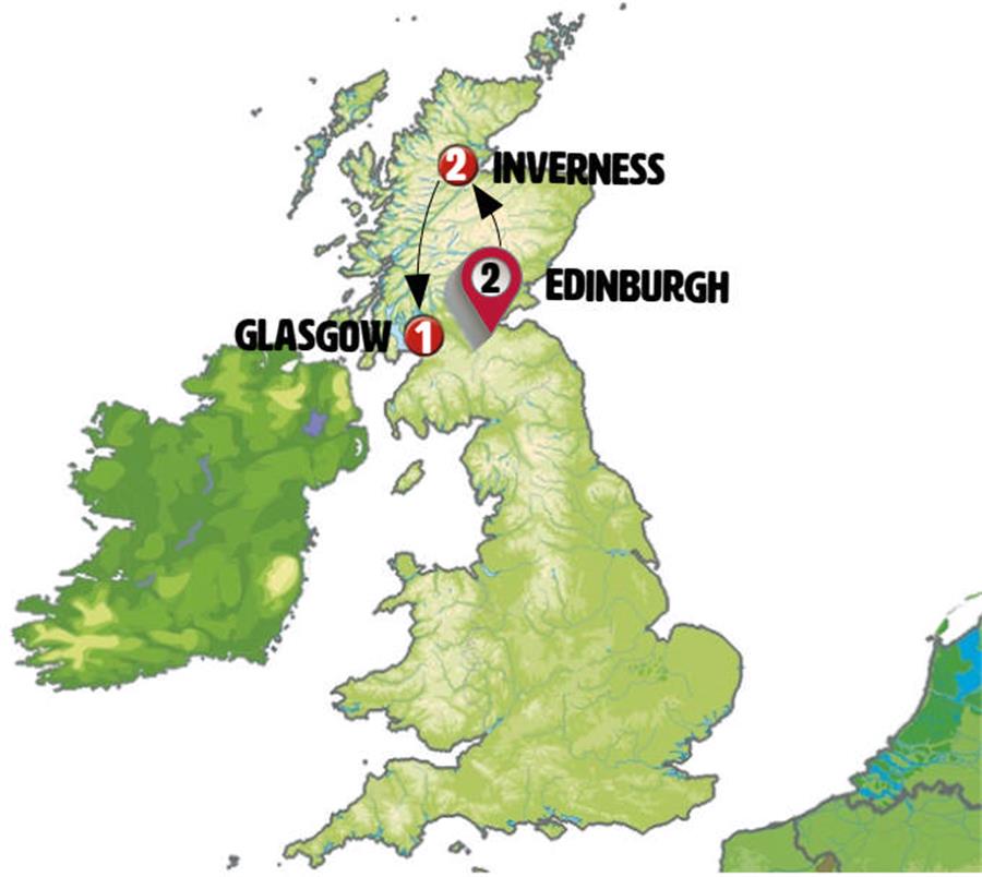 Arrival in Scotland and transfer to the hotel. Free time. You will find information about the start of your tour on the boards located at the reception.