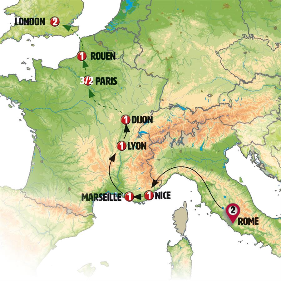 Note: On some dates, accommodation may be arranged near Nice on the French Riviera.