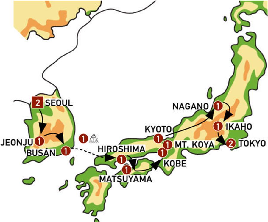 We will travel to IWAKUNI, a small city where we’ll see its beautiful and historic Kintai-kyo Bridge. We’ll then continue to MIYAJIMA, taking a ferry to the island known as “where men and gods coexist.” There we’ll visit the Itsukushima Shrine, dedicated to the guardian of the seas and built partially over the water. You’ll have time to explore the shrine, stroll through the charming town center, and enjoy lunch.