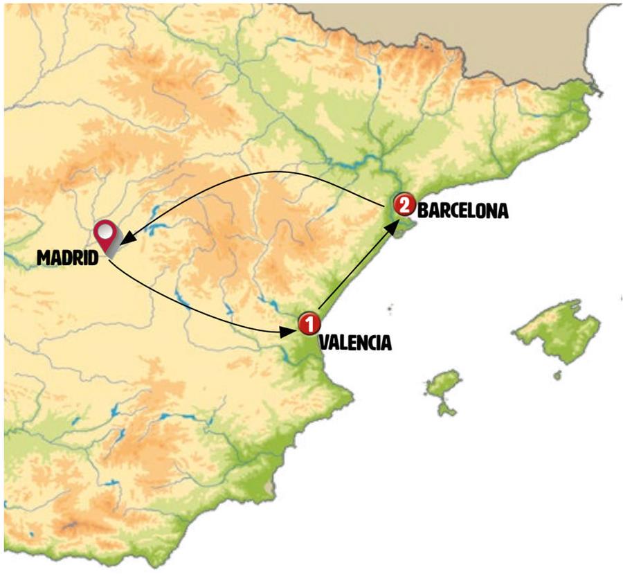Welcome to your Europamundo Trip Style tour! We leave around 8.30, in just under two hours we arrive in CUENCA, a city founded by the Arabs, with a very well preserved walled historical enclosure, steep cobbled streets and ruins of medieval castles. Highlights include the Cathedral of Santa María and San Julián and the Hanging Houses, which have become the icon of the city. After a walk with our guide we continue route to VALENCIA, capital of the Valencian community. We leave time for lunch next to the popular Malvarrosa beach. Have you tried the authentic paella valenciana? Later we will walk through the historic center of the city, where the Cathedral and its old Lonja stand out. A stop in the avant-garde City of Arts and Sciences (visit only outside, the entrance to the museum or to the oceanográfic are not included, our guide can help -if you wish- to make the reservation). Free time