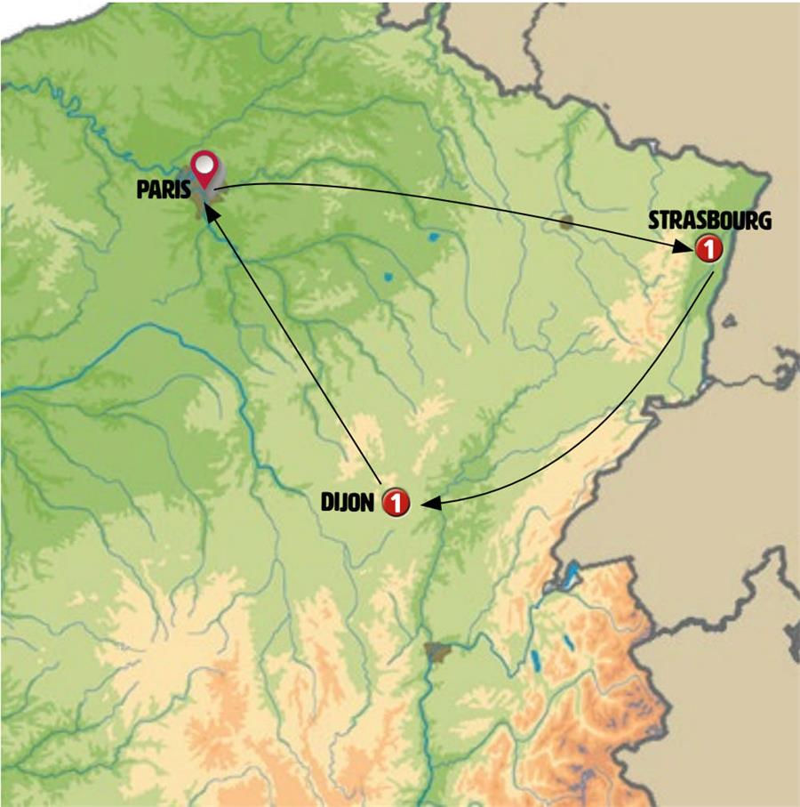 Our stage today is beautiful because in Alsace there are some of the most beautiful villages in Europe and its hilly landscapes are unforgettable. We know first of all the powerful fortress of HAUT KOENINGSBURG, in the Vosges, overlooking the Rhine Valley, one of the best preserved medieval castles in France (entrance included). After that we visit two wonderful small villages, RIBEAUVILLE, a town known for its wines with its historic center of half-timbered houses and the ruined castles that dominate the population. RIQUEWIHR, a small medieval village with cobbled streets and colorful houses that look like something from a fairy tale, scenes from the movie Beauty and the Beast are inspired by this place. We continue to COLMAR, a city with a unique architecture, with colorful wooden houses and canals that cross it, which is known for its white wine and its gastronomy. We will have time to have lunch and walk peacefully. At mid-afternoon we will leave for DIJON, capital of the Burgundy region, with lively streets, magnificent urban complex with numerous medieval and Renaissance buildings where the Palace of the Dukes stands out. Accommodation.