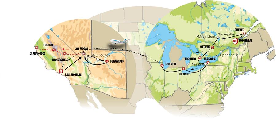 After breakfast we leave for Nevada, passing by the Hoover Dam on our way, we will observe from the bus (without stopping), and stop for lunch. Then we continue to LAS VEGAS.