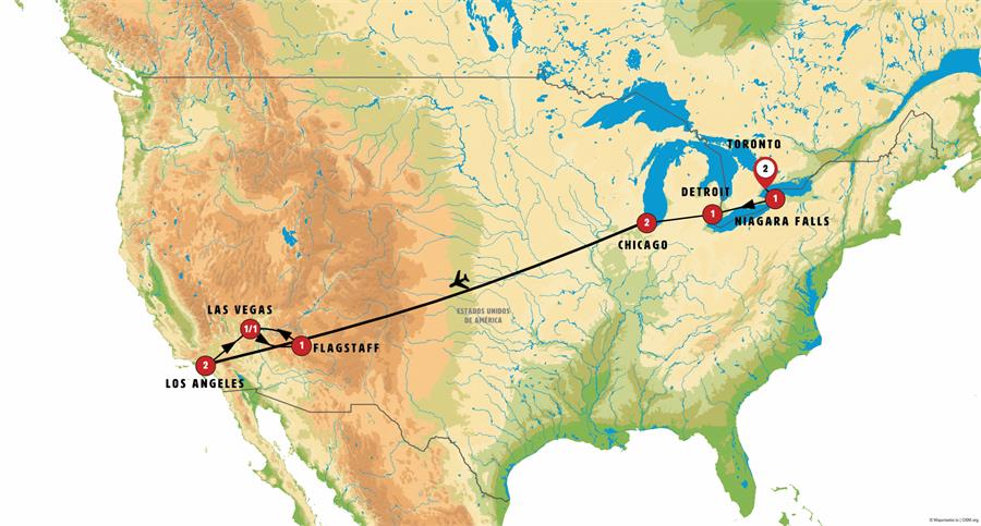 After breakfast, we will go to the beautiful town of NIAGARA ON THE LAKE. After strolling around for some time, we will continue to Niagara Falls. Once there, we will take photos of the Floral Clock before we get on the Hornblower Niagara Cruise, a small boat that will take us to the foot of the famous falls. We will later have some free time to enjoy the Clifton Hill attractions. In the late afternoon we will arrive to our hotel in Niagara Falls.