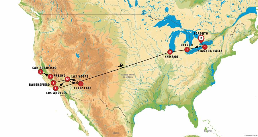 After breakfast, we will go to the beautiful town of NIAGARA ON THE LAKE. After strolling around for some time, we will continue to Niagara Falls. Once there, we will take photos of the Floral Clock before we get on the Hornblower Niagara Cruise, a small boat that will take us to the foot of the famous falls. We will later have some free time to enjoy the Clifton Hill attractions. In the late afternoon we will arrive to our hotel in Niagara Falls.