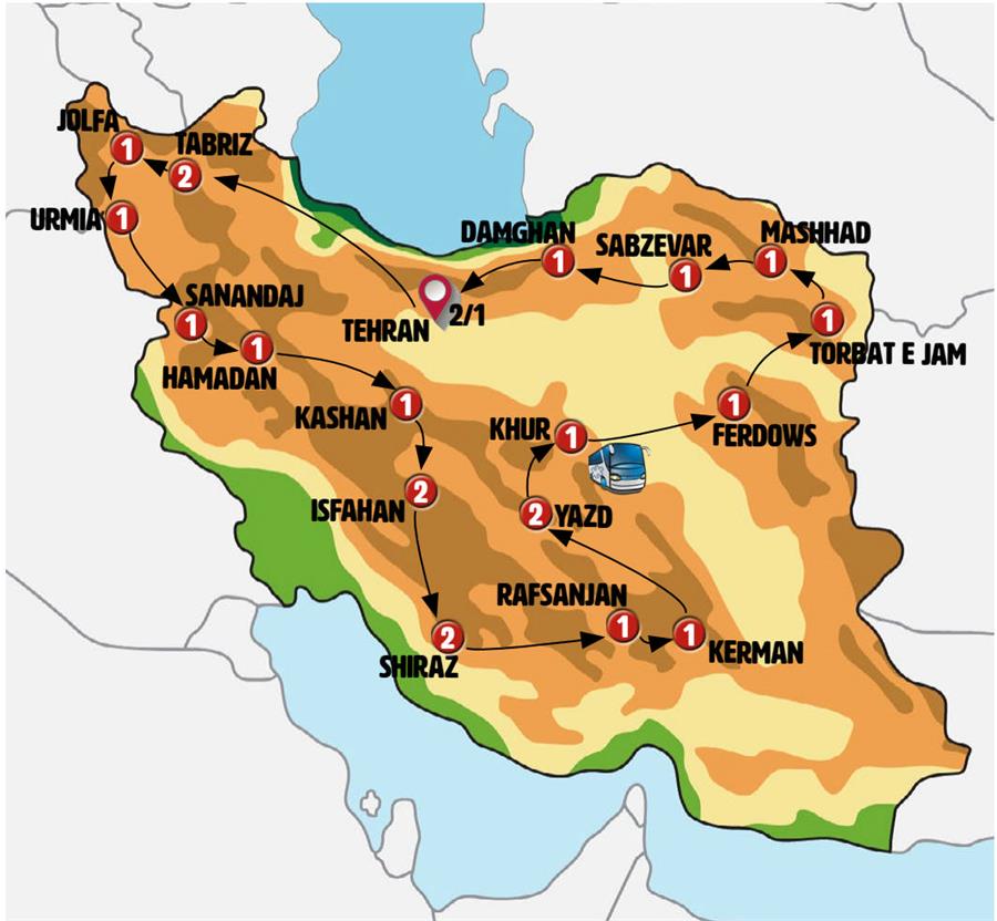 We travel south through Iranian Azerbaijan. We will stop in KHOY, a city that houses the tomb of Shams Tabrizi, a 13th century Persian mystic, poet and philosopher. We continue our trip to URMIA, in this city inhabited over 4000 years ago, legend says that Zoroaster was born here and that one of the wise men was buried here. The city located near the largest lake in Iran, with salt water and presenting vivid contrasts in its colors. We visit Urmia, a city known for its religious and ethnic diversity, home to a significant population of Christians, Orthodox, Chaldeans and the Assyrian community. We will visit some of its churches: Naneh Maryam Church was built in the 3rd century, being the oldest Christian temple in Asia. We also visit Maserkis church and Seh Gombad, a cylindrical tower from the 12th century and the Friday mosque.
