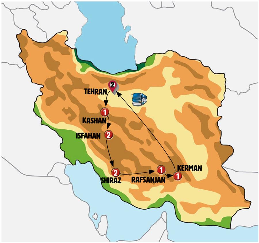 We head towards the east of the country, mountains, agricultural areas and deserts on our route. We will visit PASARGAD, another impressive archaeological site declared a World Heritage Site, built 2600 years ago, where the mausoleum of Cyrus the Great is located. We will continue to MEYMAND, a stunning troglodyte village in the desert, a UNESCO World Heritage Site. Meymand is believed to have been one of the oldest residences in Iran, dating back 12,000 years. Many of the inhabitants live in the 350 houses carved by hand among the rocks. Lunch included. After lunch we continue our route to RAFSANJAN, a small town in the desert whose history dates back thousands of years and which today is one of the largest pistachio production centers in the world. We will be able to see its beautiful "wind towers" that help keep homes cool since ancient times.
