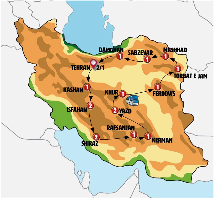 We will depart from Khur to the east of the country; we will cross the "dry salt lake" with its colors and polygonal crystal formations. We will make a stop in TABAS, known as "the bride of the desert", a pleasant city where we will visit the Golshan Garden. Afterwards, we will stop at the Historic Village of ESFAHAK, an oasis city that was destroyed by an earthquake in 1978, rebuilt as an adobe city and hiding many places of great charm. Lunch included.