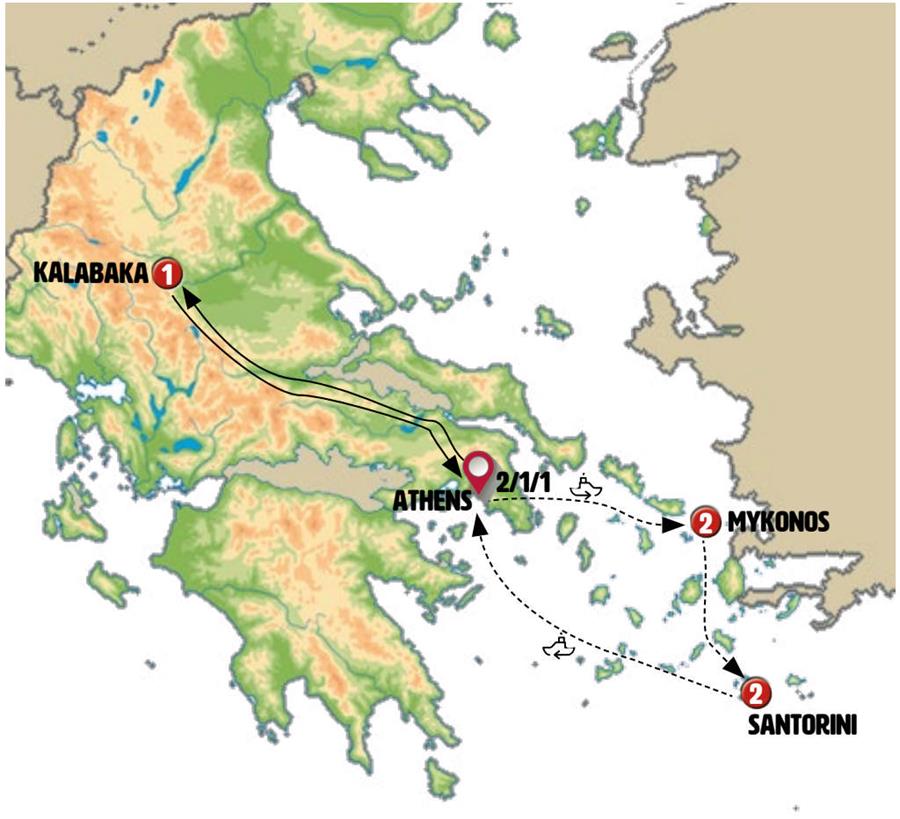 Note: Depending on hotel availability, the tour itinerary may be reversed, with a visit to Santorini first, followed by Mykonos.