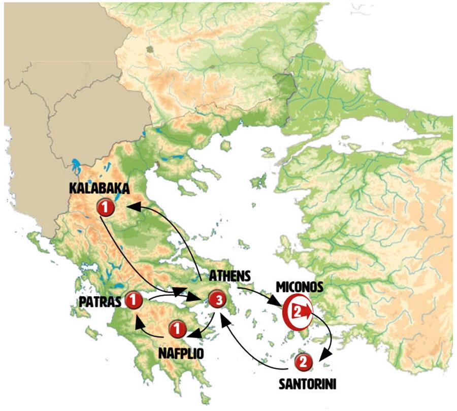 Note: Depending on hotel availability, the tour itinerary may be reversed, with a visit to Santorini first, followed by Mykonos.