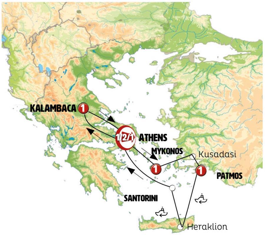 After breakfast, we’ll transfer you to the Lavrio Port for an 11:00 a.m. departure. Enjoy the scenic sea views as we sail.