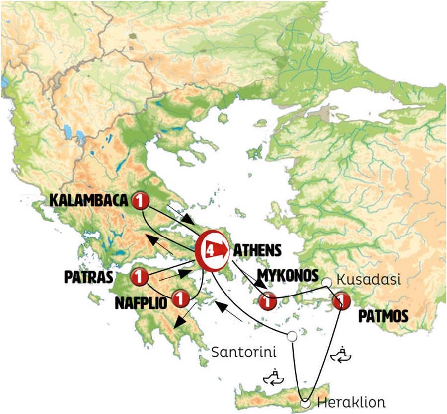 We’ll arrive in Athens early in the morning and start with a panoramic tour. Highlights include the Presidential Mansion, the Panathenaic Stadium, where the first modern Olympic Games were held, the National Library, the bustling downtown plazas, and the new facilities developed for the 2004 Olympic Games. We’ll finish the tour at the Acropolis (admission not included).