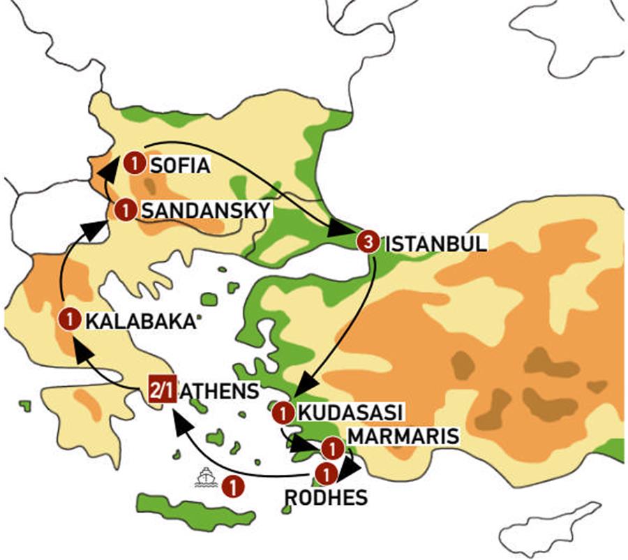 Please note: The ferry schedule between Rhodes and Marmaris is subject to frequent changes and does not operate daily (except during summer months). Accordingly, this part of the itinerary may need to be adjusted.