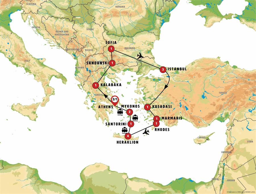 Please note: The ferry schedule between Rhodes and Marmaris is subject to frequent changes and does not operate daily (except during summer months). Accordingly, this part of the itinerary may need to be adjusted.