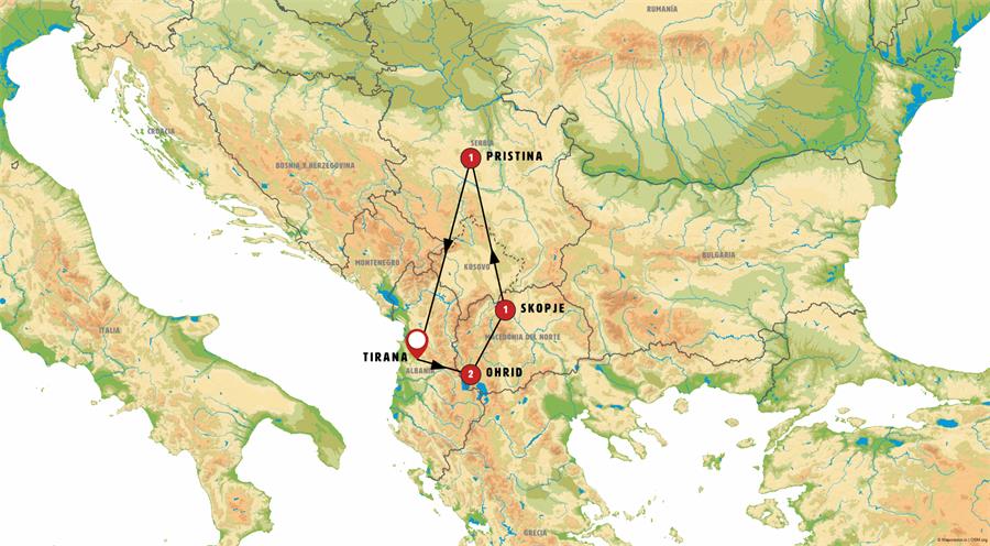 Visit to the Macedonian Capital: Church of Saint Clement of Ohrid, Mosque, Fortress. We will continue towards the Memorial dedicated to Mother Teresa, and the Church of Saint Spas, with its incredible 6 m iconostasis. high and 10 long, carved by the Filipovski brothers. The Deko workshop and learn about the history of the Macedonian ruby. Departure to Kosovo. Before arriving in Pristina, stop to visit the Gracanica Monastery - one of the places with the greatest emotional impact in the country, witness to the bloodiest and most dramatic moments of the conflict between Kosovo and Serbia. Dedicated to the Virgin Mary, the monastery church is an exceptional example of Byzantine architecture and a unique combination of arches, vaults, windows and domes. Arrival in the capital, Pristina and tour of the historic center. Accommodation in a hotel in Pristina.