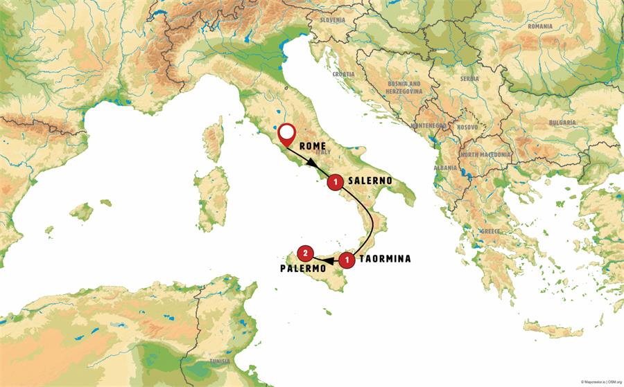 Note: Accommodation will normally be in the Taormina region, but on certain dates, lodging may be provided in Messina.