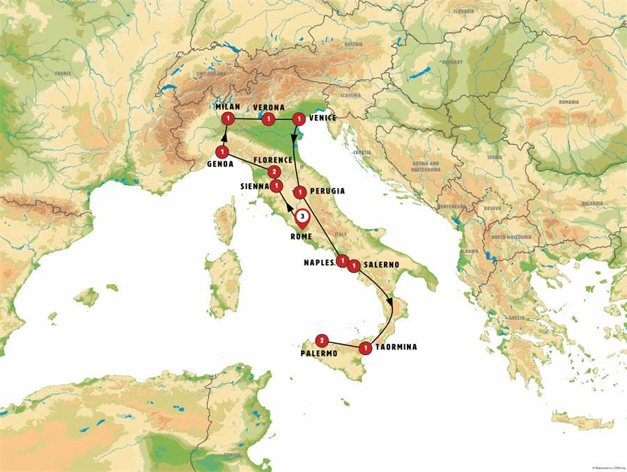 Note: Accommodation will normally be in the Taormina region, but on certain dates, lodging may be provided in Messina.
