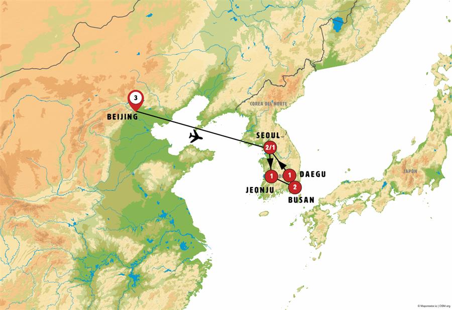 After breakfast, we’ll provide a transfer to the airport for the flight to Seoul.