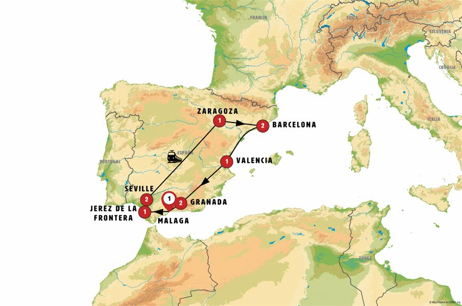 We stop in NERJA, a charming coastal town with impressive cliffs. We then continue to MÁLAGA, the capital of the "Costa del Sol", full of life and boasting a beautiful historic center.