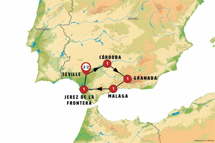Later in the afternoon, we’ll cross the magnificent bridge heading toward Seville, where we’ll arrive by the end of the day.