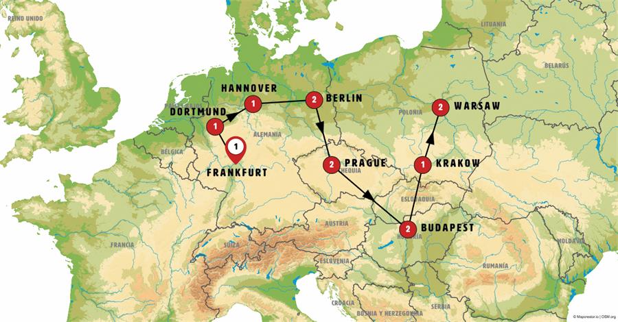 Today, we’ll explore the Rhine and Moselle Valleys, two rivers full of history and dotted with charming villages. We´ll begin with a short cruise on the Rhine, between the villages of RÜDESHEIM and SANKT GOAR, undoubtedly the most picturesque section of the river. Next, we’ll head to the Moselle River, stopping for lunch in COCHEM, a picturesque village on the Rhine riverbank overlooked by its imposing castle, which dates back over a thousand years. Afterward, we’ll travel to COLOGNE, where you´ll have time to visit its impressive Gothic cathedral. Standing at 154 meters tall, it was the tallest building in the world until the late 19th century. You can also enjoy a walk along the Rhine River and through the lively city center before we continue to our hotel in DORTMUND.