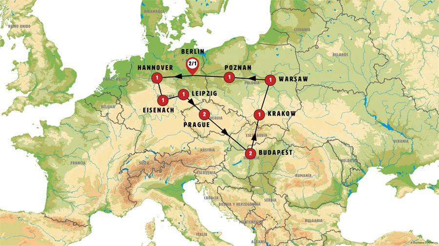 We’ll depart early from Poznan, traveling through the vast plains to Germany. We’ll arrive in Berlin around 11:30 a.m.