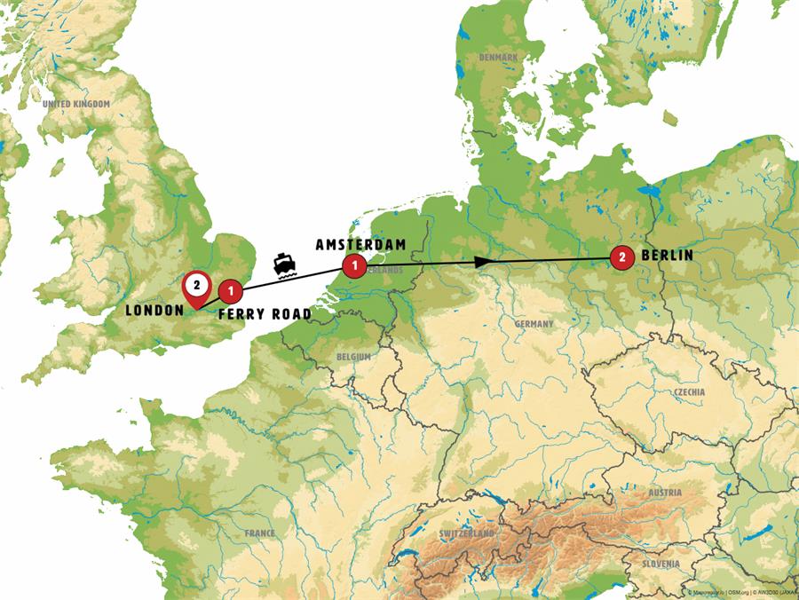 Important note: Due to the limited number of cabins available on the ferry, the itinerary may be adjusted. We might travel from London to Amsterdam via a daytime ferry, with an overnight stay in Antwerp, or alternatively, take a train or flight to Amsterdam.