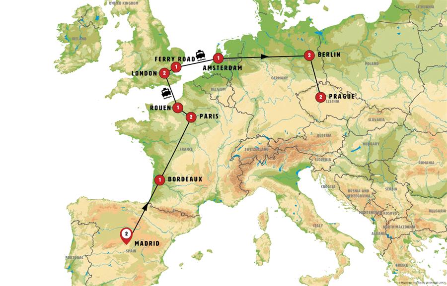 Important note: Due to the limited number of cabins available on the ferry, the itinerary may be adjusted. We might travel from London to Amsterdam via a daytime ferry, with an overnight stay in Antwerp, or alternatively, take a train or flight to Amsterdam.