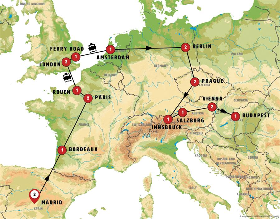 Important note: Due to the limited number of cabins available on the ferry, the itinerary may be adjusted. We might travel from London to Amsterdam via a daytime ferry, with an overnight stay in Antwerp, or alternatively, take a train or flight to Amsterdam.