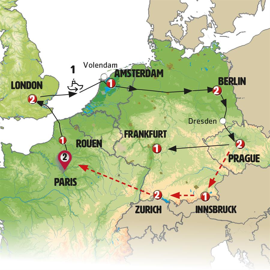 Important note: Due to the limited number of cabins available on the ferry, the itinerary may be adjusted. We might travel from London to Amsterdam via a daytime ferry, with an overnight stay in Antwerp, or alternatively, take a train or flight to Amsterdam.