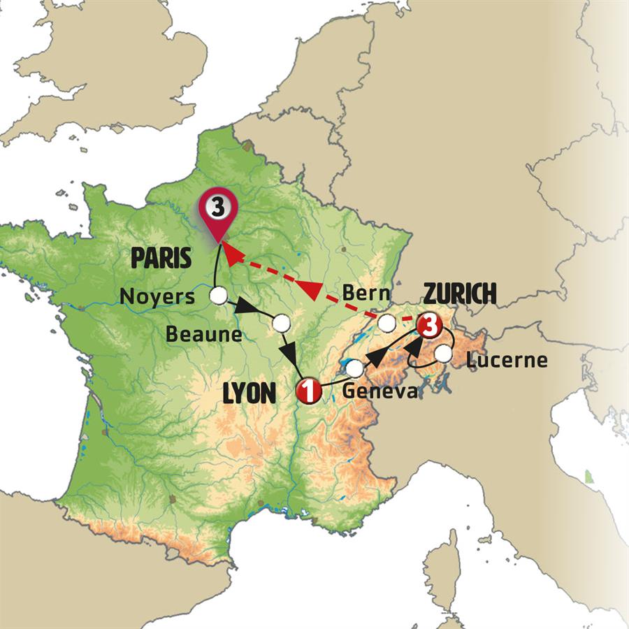 Note: Depending on the number of passengers traveling from Geneva to Zurich, this part of the trip may be done by train, in which case there will be no stop in Neuchâtel.