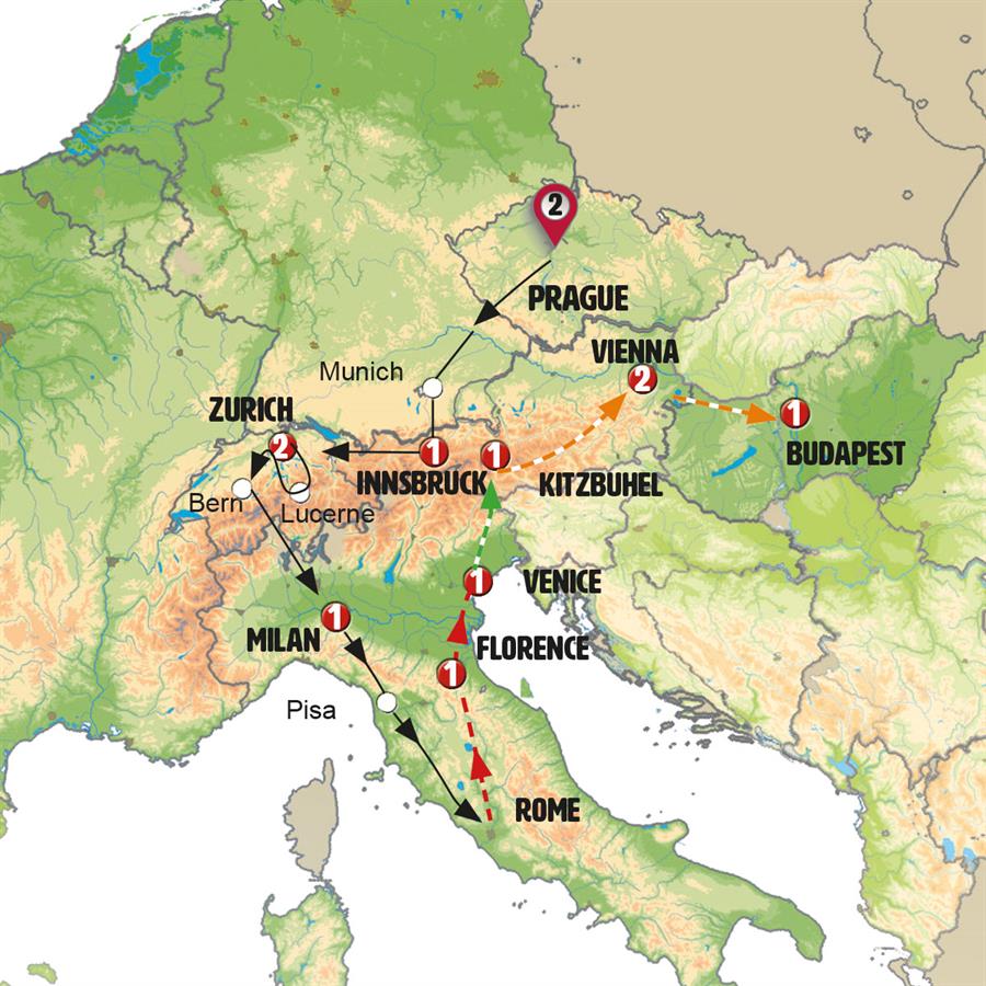 We´ll depart early and head to Bavaria, GERMANY. We’ll arrive in MUNICH by midday, where you´ll have free time to stroll through the historic city center and enjoy lunch. In the afternoon, we’ll continue to AUSTRIA. Upon arrival in the heart of the Alps, you´ll have time to explore INNSBRUCK, the capital of Tyrol. There will be time for dinner in the Golden Roof area and Old Town.