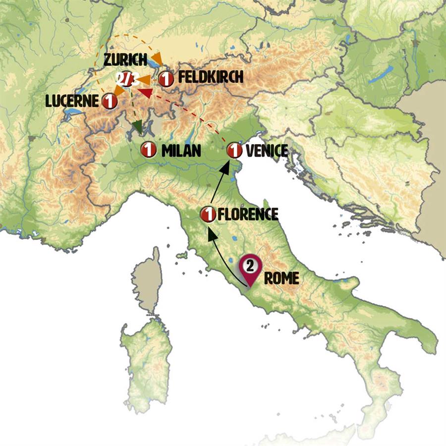 We’ll depart Venice and make our way to Austria. Upon arriving in Innsbruck, you’ll have time to explore the historic town center and enjoy lunch. Afterward, we’ll continue our journey through the beautiful Tyrolean landscapes as we cross into Switzerland, arriving in Zurich.