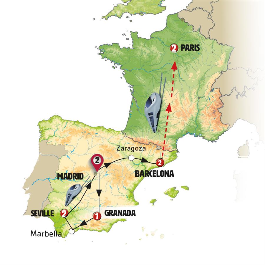 At the scheduled time, we’ll provide a transfer to the station for your high-speed train journey from Barcelona to Paris, which is included in your trip. In just over 6 hours of comfortable travel, you’ll arrive at your destination. Upon arrival, another transfer will take you to your hotel. Your guide will contact you in the evening, or you can check the information signs provided at the hotel reception.