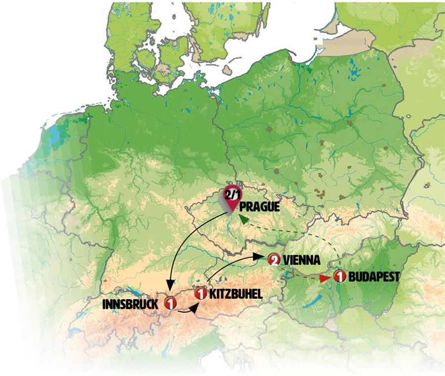 We´ll depart early and head to Bavaria, GERMANY. We’ll arrive in MUNICH by midday, where you´ll have free time to stroll through the historic city center and enjoy lunch. In the afternoon, we’ll continue to AUSTRIA. Upon arrival in the heart of the Alps, you´ll have time to explore INNSBRUCK, the capital of Tyrol. There will be time for dinner in the Golden Roof area and Old Town.