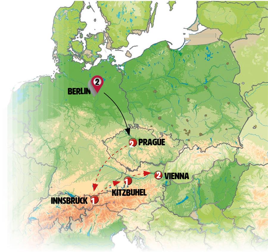 We´ll depart early and head to Bavaria, GERMANY. We’ll arrive in MUNICH by midday, where you´ll have free time to stroll through the historic city center and enjoy lunch. In the afternoon, we’ll continue to AUSTRIA. Upon arrival in the heart of the Alps, you´ll have time to explore INNSBRUCK, the capital of Tyrol. There will be time for dinner in the Golden Roof area and Old Town.