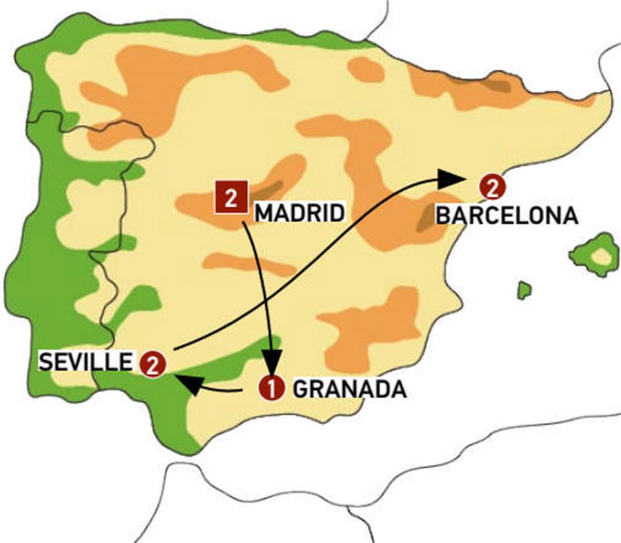 Afterward, we head into the Andalusian sierras and arrive in RONDA, a stunning white town famous for its dramatic gorge that splits the city in two.