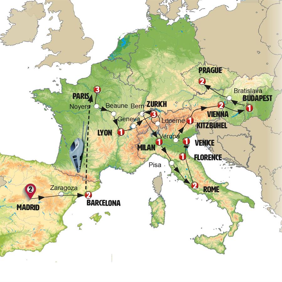 Note: The train journey will be without an Europamundo guide.