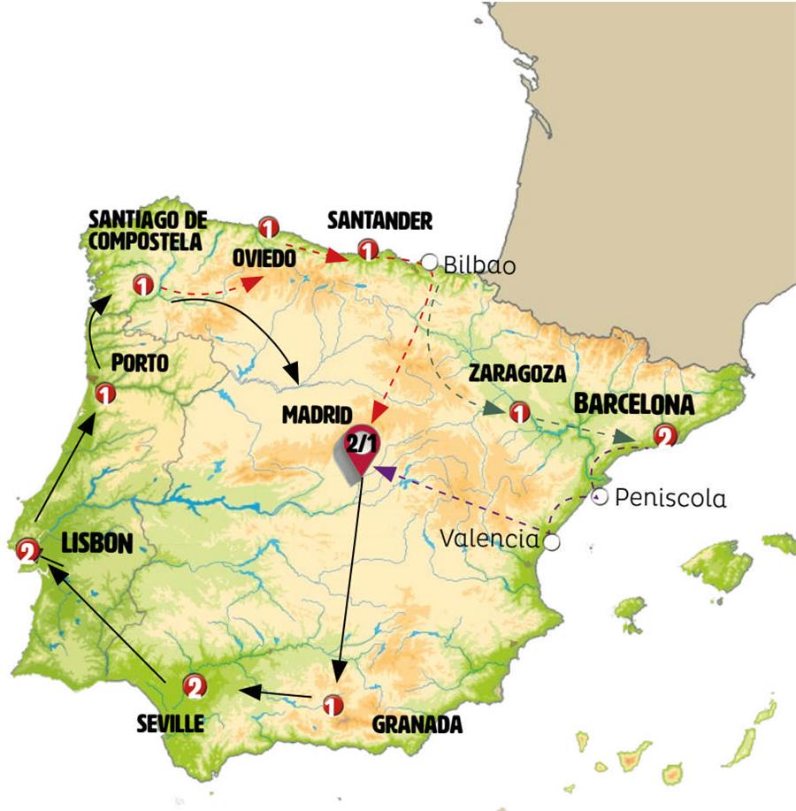 Note: Depending on the number of passengers, the journey from Bilbao to Madrid may be conducted by either regular coach or train service.