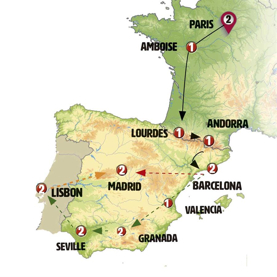 Today we’ll journey to the south of FRANCE through vineyards, arriving in BORDEAUX, whose town center is a UNESCO World Heritage Site. You’ll have time for lunch and to explore. We suggest visiting the Port of the Moon and the Cathedral of St. Andrew. We’ll then continue towards the Pyrenees, reaching LOURDES in the late afternoon. Here, you can attend the candlelight procession (held from late March to the end of October) and visit various places of worship. Dinner will be included at the hotel for all our passengers.