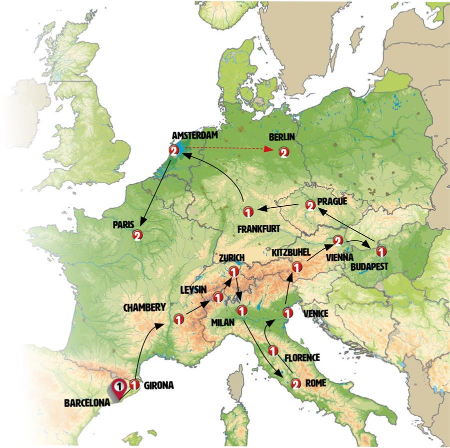 Note: If there are few travelers, we may take a train from Venice to Innsbruck.