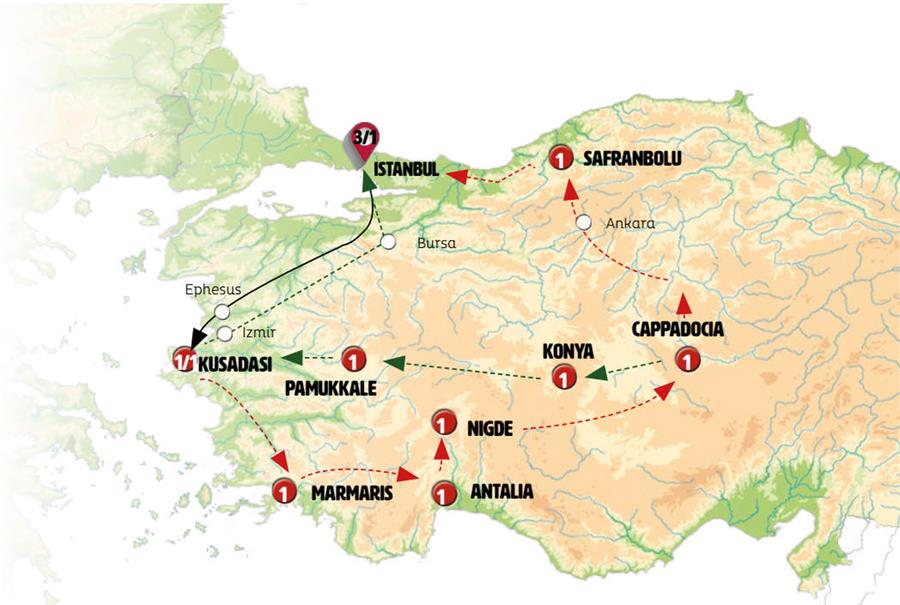 Note: During high season, from May through October, accommodation will be in Izmir. In this case, after visiting Ephesus, we’ll head directly to Izmir on the Aegean coast, without stopping in Kusadasi, and we’ll enjoy a brief panoramic tour of the city. The following day, on our way to Istanbul, we’ll make an additional stop in the charming traditional town of Balikesir, allowing time for lunch.