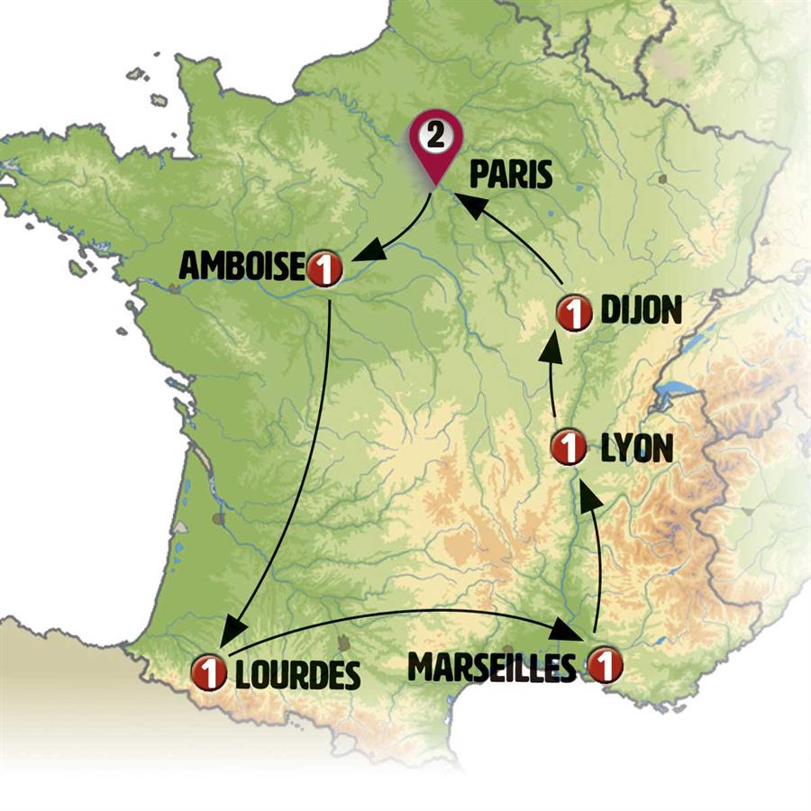 Villages, landscapes, history – today we’ll see some of the most beautiful places in Provence. In Arles, a UNESCO World Heritage city, we’ll explore its Roman and medieval legacy and be reminded of Van Gogh. In Les Baux, we’ll visit this small medieval village and include admission to Carrières de Lumières, an impressive underground show that combines art, image, and sound in its old quarries. We’ll have time for lunch and a stroll in Avignon, home to the immense Palais des Papes. Our journey will continue to Lyon, where we’ll walk through the World Heritage Site old town and take the cable car up to Notre-Dame de Fourvière, a huge basilica offering a great view over the city.