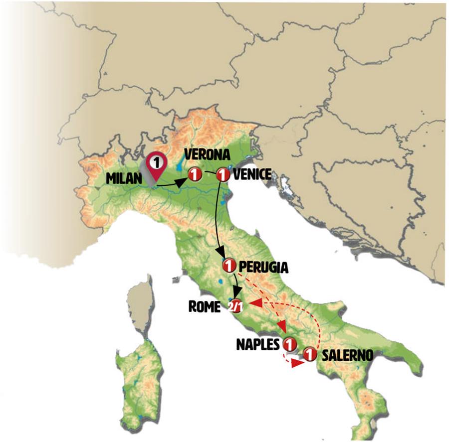 We’ll have time to explore Verona, the enchanting city of Romeo and Juliet, before departing for Venice, arriving around 01:00 p.m. A delightful boat trip to St. Mark’s Square is included, followed by a guided walking tour of the City of Canals, including a visit to see Murano glasswork. Afterwards, enjoy some leisure time—perhaps a gondola ride? Accommodation will be in the Mestre district.