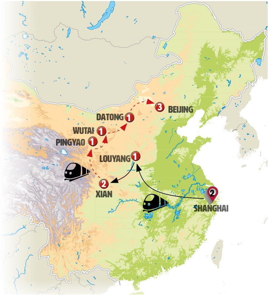 By late afternoon, we’ll arrive in Xian, where our day will come to an end.