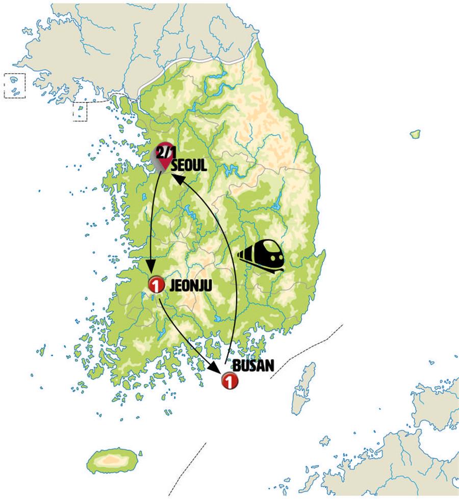 Dinner is included at a local restaurant. Return by Seoul’s modern subway system (ticket included). Overnight stay.