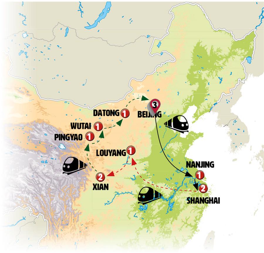 After breakfast, we’ll head to the train station to board one of China’s state-of-the-art high-speed trains. Traveling at 300 km/h, we’ll cover nearly 1,000 km in less than four hours, arriving in Nanjing, a vibrant city of eight million people, often regarded as one of the most pleasant in China.