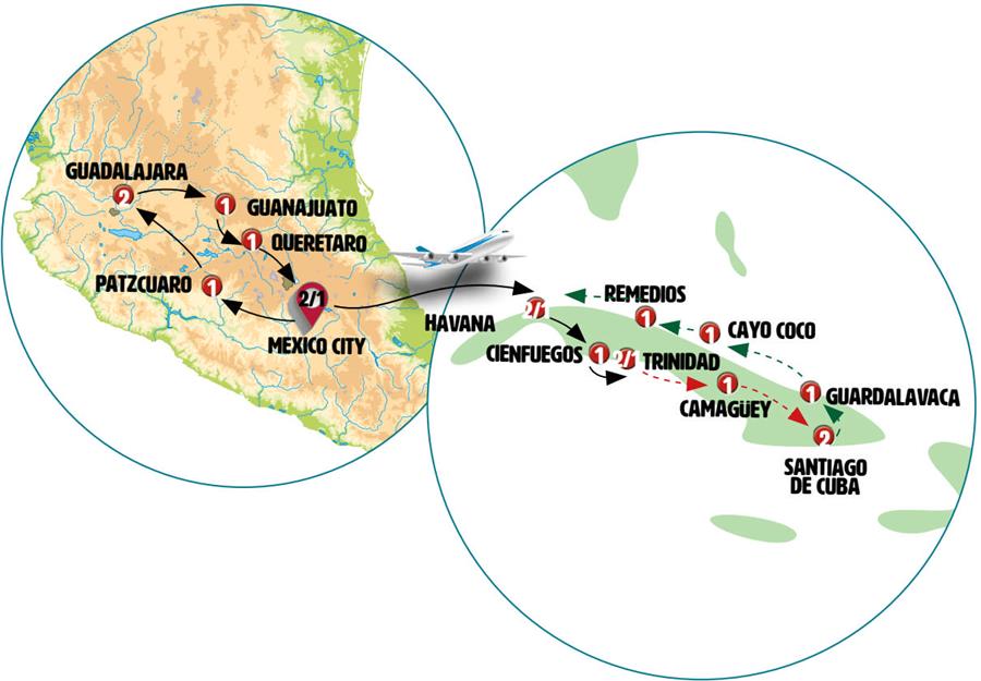 We’ll then continue to GUADALAJARA, the capital of the state of Jalisco, a vibrant colonial city known as the birthplace of Mariachi and Tequila. Arrival will be in the late afternoon.